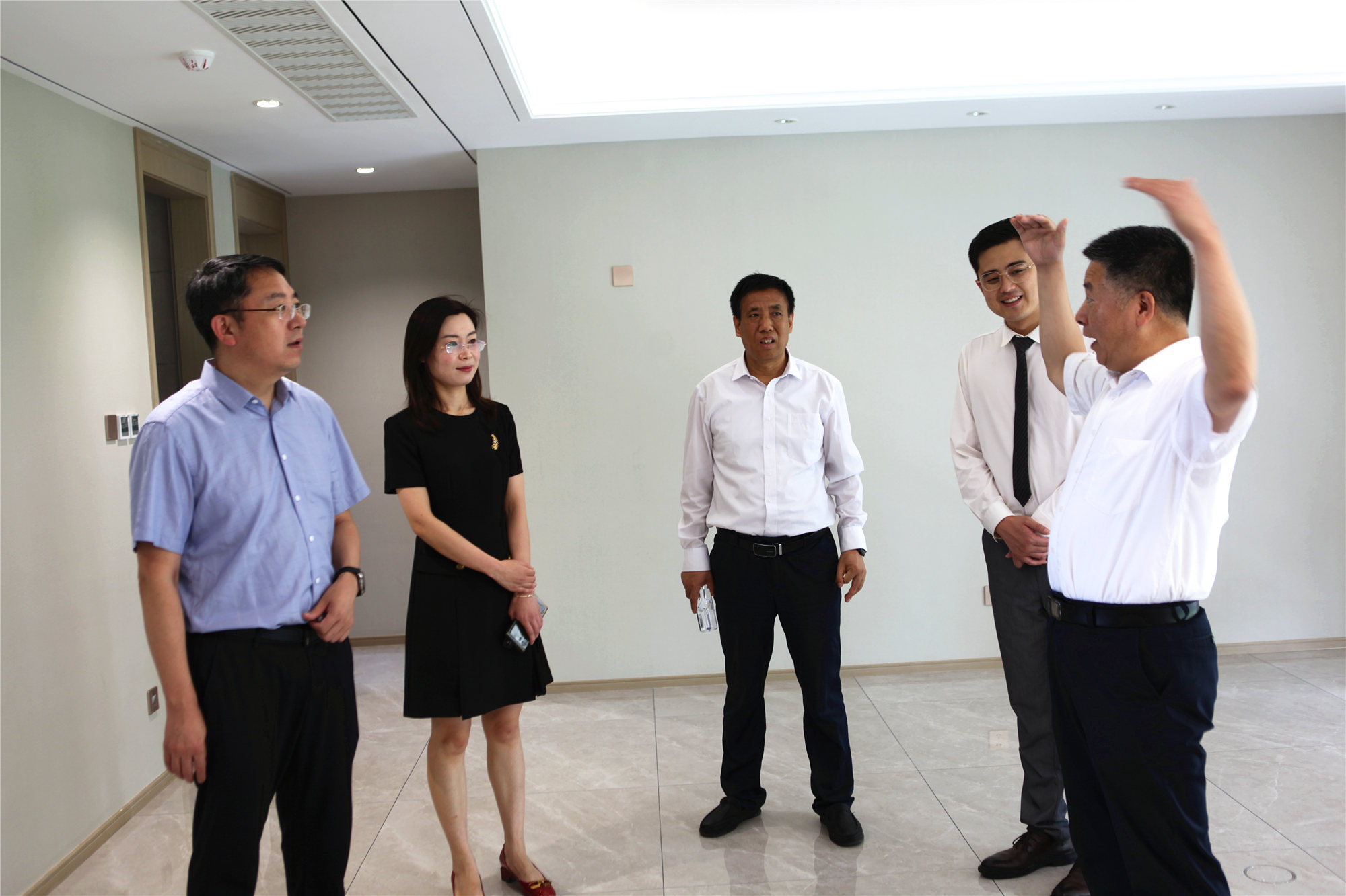 6月29日下午,山東省住房和城鄉建設廳二級巡視員都昌林、房地產(chǎn)管理處副處長(cháng)李曉、臨沂市住建局城鄉建設服務(wù)中心主任孟慶民一行蒞臨金泰錦府參觀(guān)指導,公司有關(guān)領(lǐng)導全程陪同。