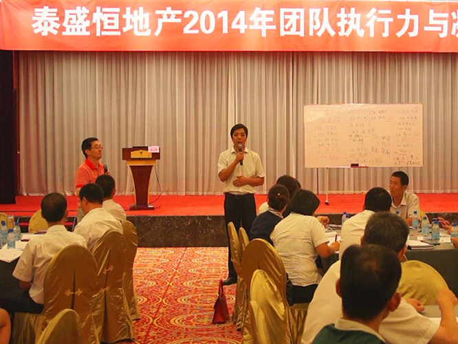 8月16日,伴隨著(zhù)熱烈的掌聲,泰盛恒地產(chǎn)開(kāi)展的《打造房地產(chǎn)團隊卓越執行力與凝聚力》培訓在臨沂賓館二樓會(huì )議室舉行,華鵬集團人員、地產(chǎn)全員、啟翔全員、港信裝飾公司、鴻豐園林公司、中匯地產(chǎn)等單位相關(guān)領(lǐng)導和員工代表共170余人參加了培訓。公司特邀北京華夏基石管理咨詢(xún)集團高級顧問(wèn)涂山青擔任講師。