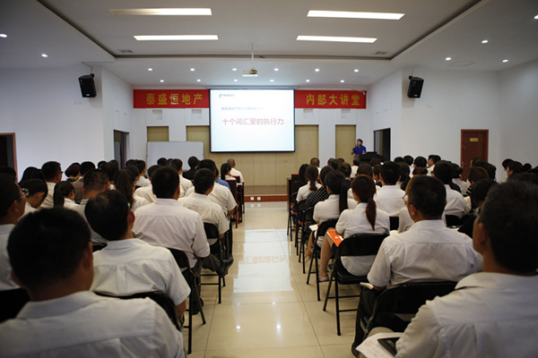 7月8日晚19時(shí),在這炎炎夏日的傍晚,公司六樓會(huì )議室座無(wú)虛席,來(lái)自地產(chǎn)公司、奧晟物業(yè)、啟翔房產(chǎn)和中匯地產(chǎn)的領(lǐng)導與員工早早的來(lái)到會(huì )場(chǎng)。營(yíng)銷(xiāo)總監光文廣為大家帶來(lái)的執行力系列培訓之《十個(gè)詞匯里的執行力》。