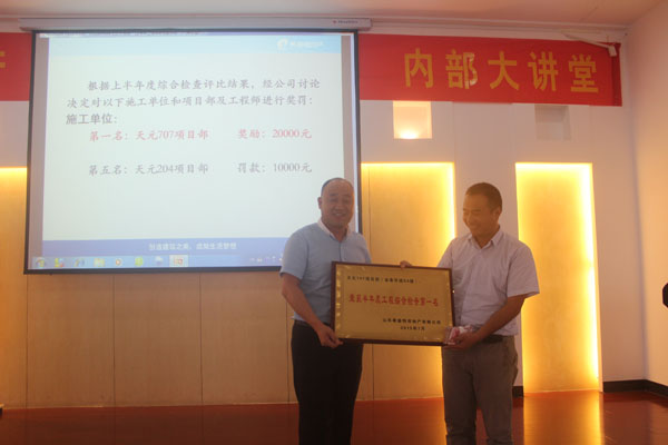 天元707項目部作為金泰華城S4項目的參建單位,在上半年工程檢查中綜合排名第一。獲得公司給予的20000元現金獎勵。同時(shí)公司金泰華城項目部也獲得20000元現金獎勵。獲獎單位表示將會(huì )再接再厲,在今后的檢查中取得更好成績(jì)。