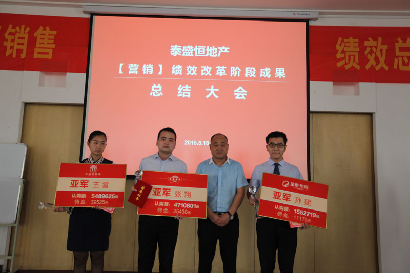 隨后,大會(huì )對各項目的銷(xiāo)售的先進(jìn)個(gè)人進(jìn)行表彰,宣讀銷(xiāo)售業(yè)績(jì),高業(yè)績(jì)高績(jì)效的改革模式,不僅激勵銷(xiāo)售人員勇創(chuàng )佳績(jì),更是給予現場(chǎng)的與會(huì )人員極大的震撼,尤其是班總和孫總分別對銷(xiāo)亞和銷(xiāo)冠進(jìn)行的頒獎儀式使得現場(chǎng)的氛圍達到了高潮!