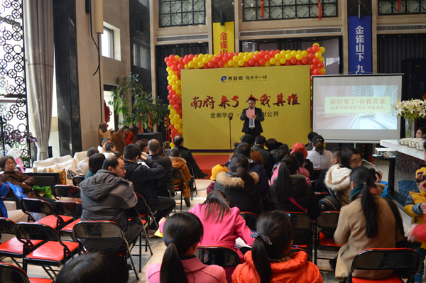 伴隨著(zhù)霸氣的這一句開(kāi)場(chǎng)白,金泰華府二期南府于2月27日在營(yíng)銷(xiāo)中心揭開(kāi)了首次開(kāi)盤(pán)的序幕!開(kāi)盤(pán)現場(chǎng)一如既往的火爆,看房的,選房的、買(mǎi)房的,領(lǐng)禮品的絡(luò )繹不絕,整個(gè)現場(chǎng)人山人海,熱鬧非凡。