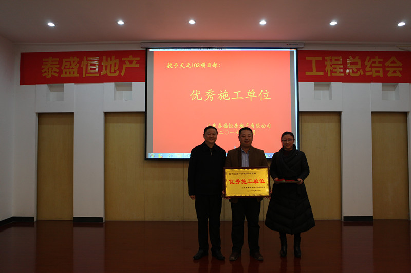會(huì )上,表彰了金泰華府南府項目、泰盛廣場(chǎng)項目和天元102項目部,對獲獎的項目管理中心和優(yōu)秀施工單位進(jìn)行了頒獎。