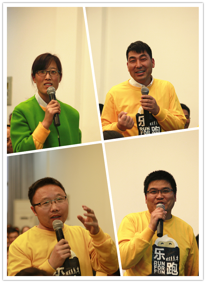 一首《最貴是健康》拉開(kāi)了本次大會(huì )的序幕。首先,趙主席先以“經(jīng)過(guò)這段時(shí)間的跑步,大家感覺(jué)自己有什么變化嗎?”為切入點(diǎn)進(jìn)行交流,隨后回顧了公司組織的首屆樂(lè )跑賽活動(dòng)精彩視頻,并讓舒格蘭案場(chǎng)的同事分享了10公里跑步的感想和感悟,由此引出“你是如何看待跑步的”、“你為什么而跑步”等問(wèn)題讓大家思考、討論。