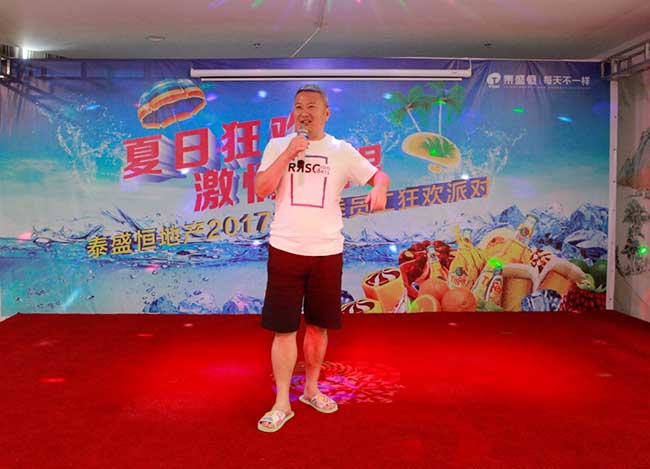 8月5日,泰盛恒地產(chǎn)2017年員工狂歡派對在泰盛?金湯1號店成功舉辦。公司副董事長(cháng)孫董親臨活動(dòng)現場(chǎng),與200余名員工齊聚一堂。