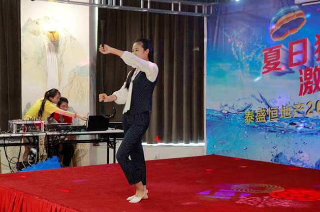 整潔優(yōu)雅的環(huán)境、整齊美觀(guān)的桌椅、動(dòng)感活潑的音樂(lè )、繽紛閃耀的燈光、精致可口的甜點(diǎn),使整個(gè)活動(dòng)現場(chǎng)熱鬧而不失穩重,溫馨而不失活潑。伴隨著(zhù)動(dòng)感的音樂(lè ),大家紛紛就坐,與周?chē)耐聼崆榻徽?。上?/span>10時(shí)30分,活動(dòng)準時(shí)開(kāi)始。泰盛恒地產(chǎn)總經(jīng)理黃總首先發(fā)表了開(kāi)場(chǎng)致辭,隨后各部門(mén)開(kāi)始表演精心準備的節目?!稊]起袖子加油干》、《我相信》等合唱唱出了氣勢,唱出了希望,《干了這杯酒》、《紅日》等獨唱唱出了個(gè)性,唱出了風(fēng)采。舞蹈及健身操等節目也相繼上演,展示了公司員工積極的精神風(fēng)貌。節目表演過(guò)程中還穿插了精彩的抽獎環(huán)節,引得現場(chǎng)陣陣歡呼。