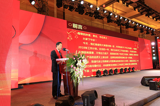 之后總經(jīng)理黃佑忠作了全面細致的工作報告,總結了公司2017年的工作成績(jì)及亮點(diǎn),安排部署了2018年的各項工作任務(wù)。黃總在報告中指出,2018年公司總體發(fā)展將圍繞“一個(gè)中心、兩大任務(wù)、三項指標、四大提升、五個(gè)項目”展開(kāi),大家在新的一年里齊心協(xié)力,在“一二三四五”發(fā)展思路的指引下,以更加飽滿(mǎn)的工作激情,奮力譜寫(xiě)公司事業(yè)發(fā)展新篇章。