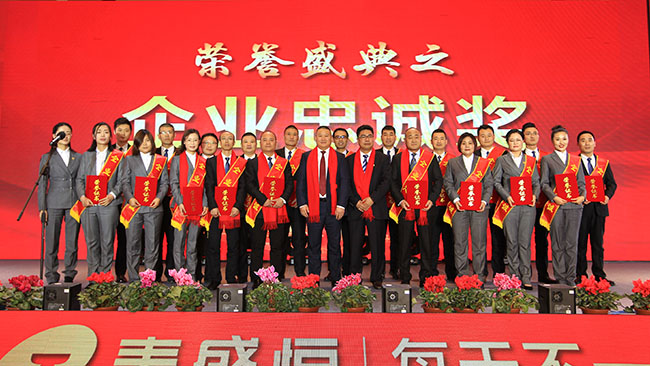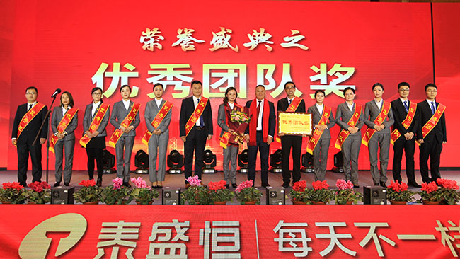 會(huì )上,對2017年取得突出成績(jì)的優(yōu)秀團隊及個(gè)人,以及在公司工作五年以上的老員工進(jìn)行了隆重表彰,公司高層領(lǐng)導分別上臺宣布了獲獎名單并為其頒獎。其中,泰盛廣場(chǎng)項目獲得優(yōu)秀項目獎、營(yíng)銷(xiāo)管理中心和招采管理中心獲得優(yōu)秀團隊獎,孫董為獲獎團隊頒獎了榮譽(yù)獎牌。成績(jì)只代表過(guò)去,希望獲獎的團隊及個(gè)人在新的一年里戒驕戒躁、再接再厲,充分發(fā)揮模范帶頭作用,為公司發(fā)展再立新功。