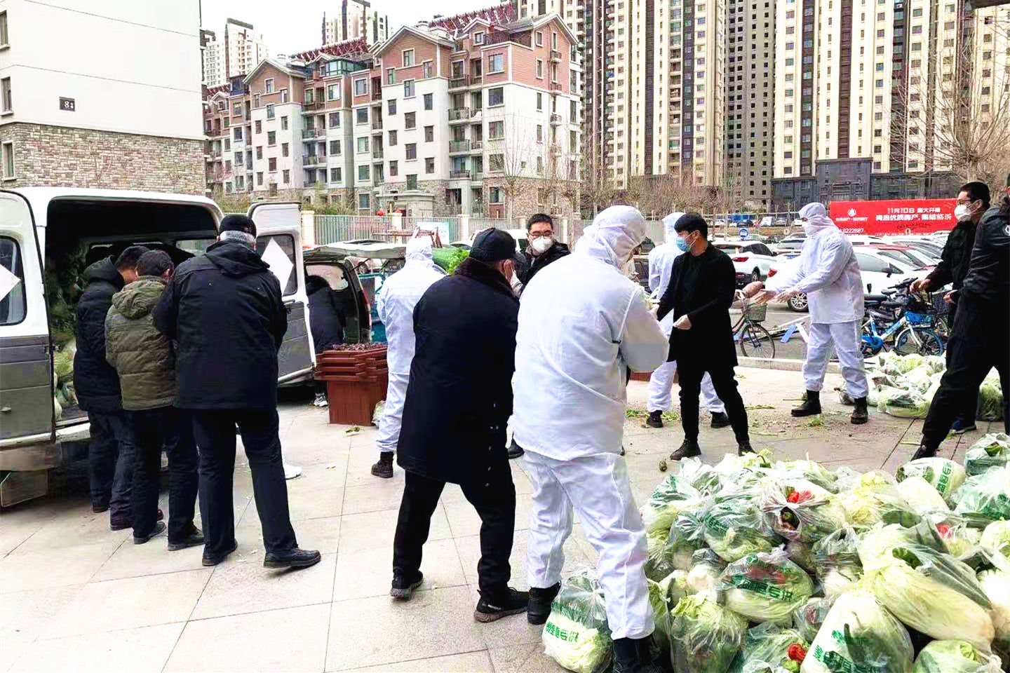 自正月初三起,整個(gè)臨沂市的各小區、社區實(shí)行全封閉管理,全體居民禁止外出。禁足于家中的業(yè)主,面臨著(zhù)“斷糧”的局面。如何在做好防護措施的前提下,保障業(yè)主民生,維持日常生活,成為泰盛恒地產(chǎn)重點(diǎn)研究的課題。隨后,公司領(lǐng)導班子當機立斷,決心開(kāi)展將有機蔬菜送至小區千家萬(wàn)戶(hù)的活動(dòng)。一批一批產(chǎn)自李官農場(chǎng)的新鮮有機蔬菜,被運送至金泰華城、金泰華府、金泰舒格蘭等小區,物業(yè)工作人員冒著(zhù)嚴寒將蔬菜分類(lèi)、裝袋,并挨家挨戶(hù)送到業(yè)主手中,一并送去的還有溫暖的問(wèn)候。數千戶(hù)業(yè)主在人生中的“至暗時(shí)刻”感受到了來(lái)自泰盛恒地產(chǎn)的關(guān)懷。在疫情防控工作中嚴謹認真、措施到位、深受業(yè)主好評的金泰華府,更是成為臨沂電視臺宣傳社區疫情防控的標桿。