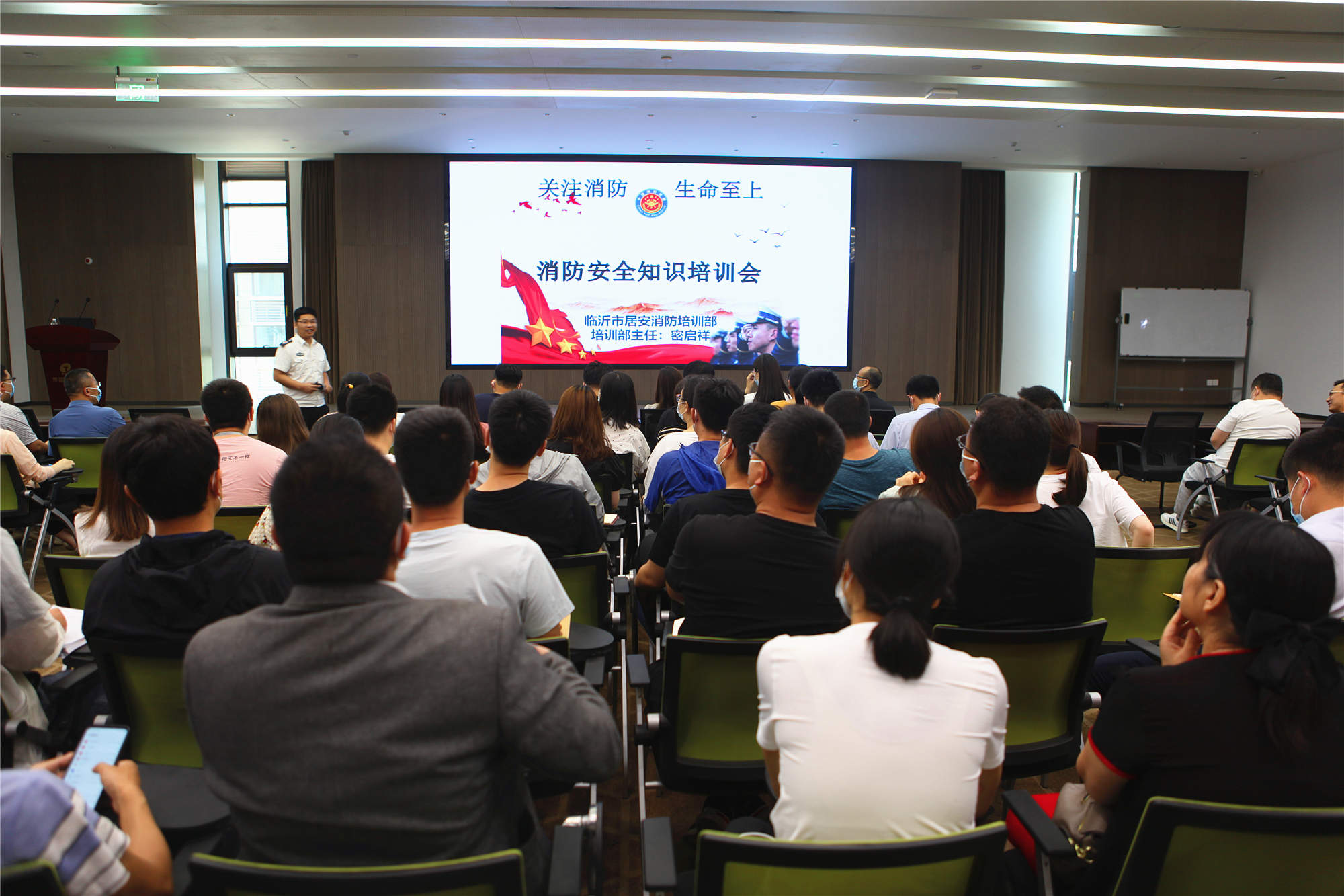臨沂市居安消防培訓部主任密啟祥正在進(jìn)行培訓