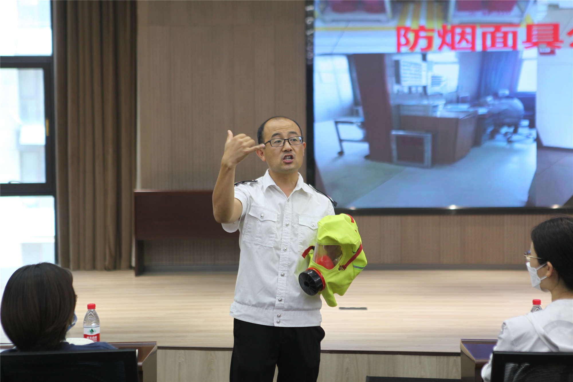 居安消防高級教員李國慶講解防煙面具的正確用法